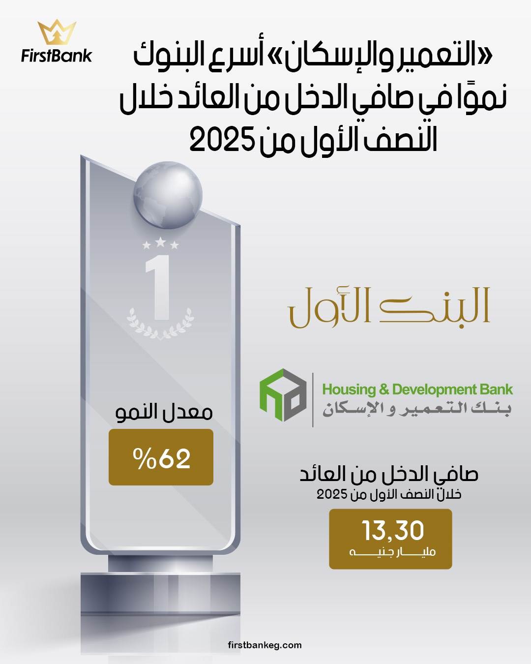 ودفع هذا الأداء القوي للبنك إلى تصدره قائمة «First Bank» للبنوك الأسرع نموًا في صافي الدخل من العائد خلال النصف الأول من 2025.