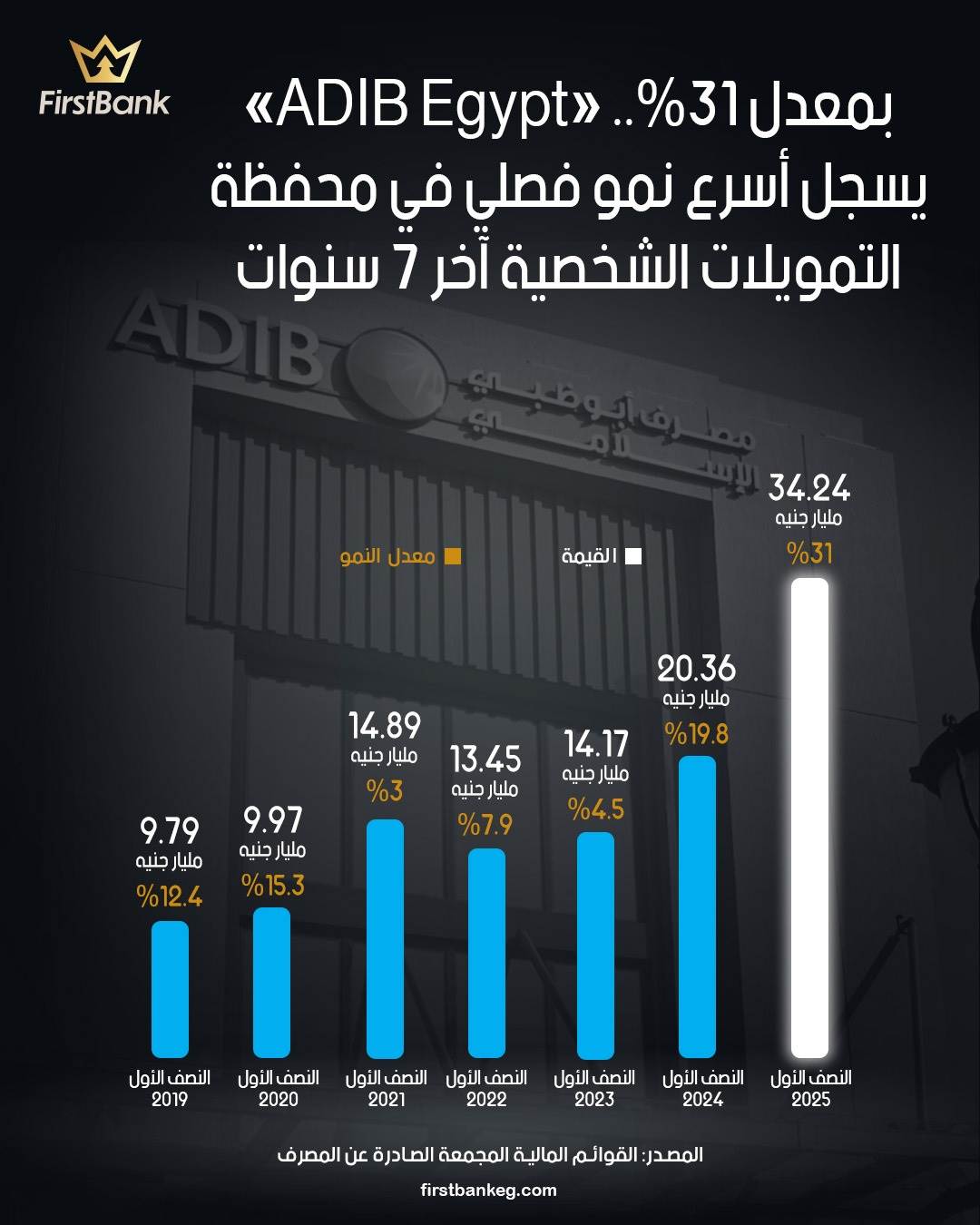 38564 /38564 بمعدل 31%.. «ADIB Egypt» يسجل أسرع نمو فصلي في محفظة التمويلات الشخصية آخر 7 سنوات First Bank 04:34 م - الإثنين 29 سبتمبر 2025 شارك شارك