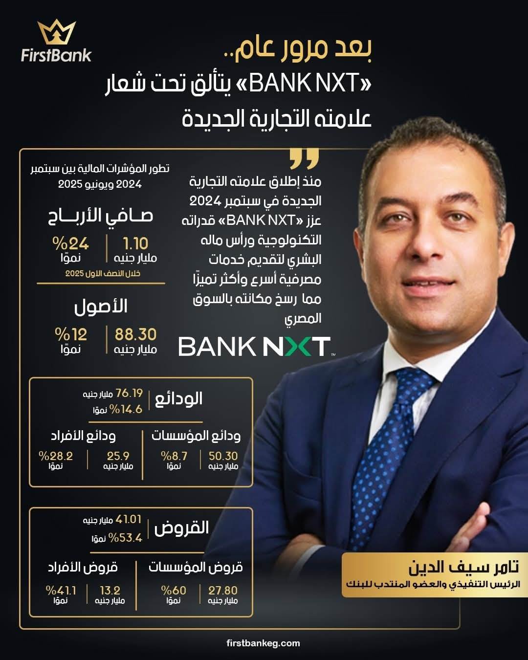 38617 /38617 بعد مرور عام.. بنك نكست يتألق تحت شعار علامته التجارية الجديدة First Bank 05:03 م - الثلاثاء 30 سبتمبر 2025 شارك شارك