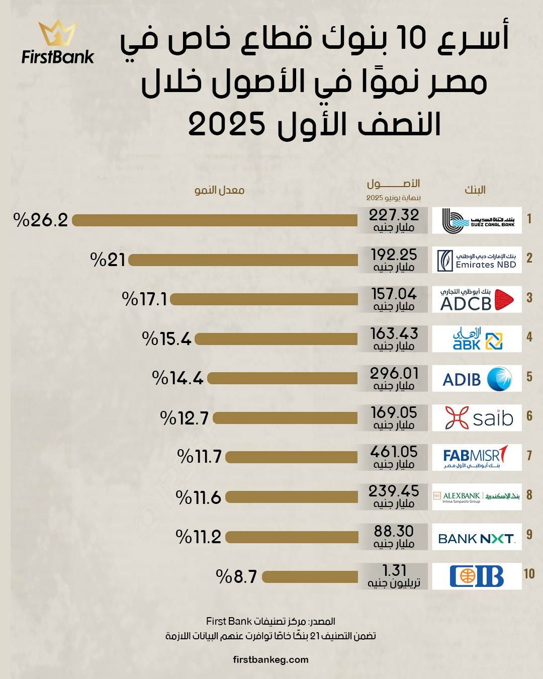 38622 /38622 أسرع 10 بنوك قطاع خاص في مصر نموًا في الأصول خلال النصف الأول 2025 08:03 م - الثلاثاء 30 سبتمبر 2025 شارك شارك