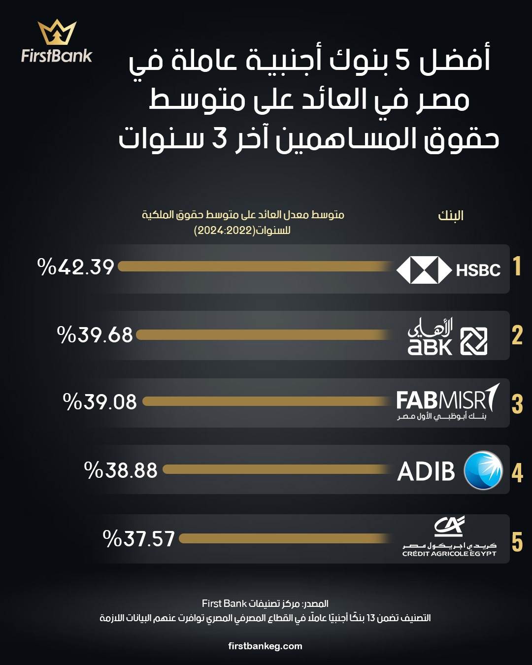 38651 /38651 أفضل 5 بنوك أجنبية عاملة في مصر في العائد على متوسط حقوق المساهمين آخر 3 سنوات 02:48 م - الأربعاء 1 أكتوبر 2025 شارك شارك