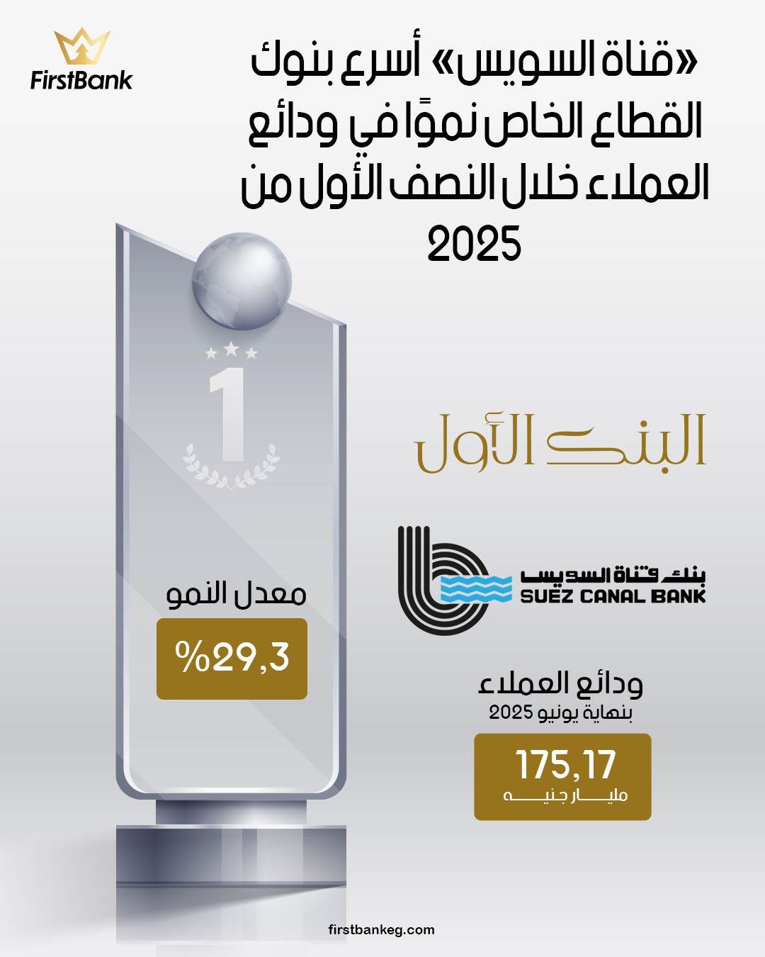 ودفع هذا الأداء القوي للبنك إلى تصدره قائمة «First Bank» لأسرع بنوك القطاع الخاص نموًا في ودائع العملاء خلال النصف الأول من 2025.