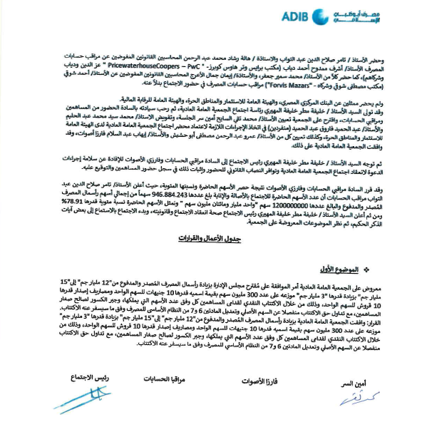 عمومية «ADIB-Egypt» توافق على زيادة رأسماله المصدر والمدفوع إلى 15 مليار جنيه