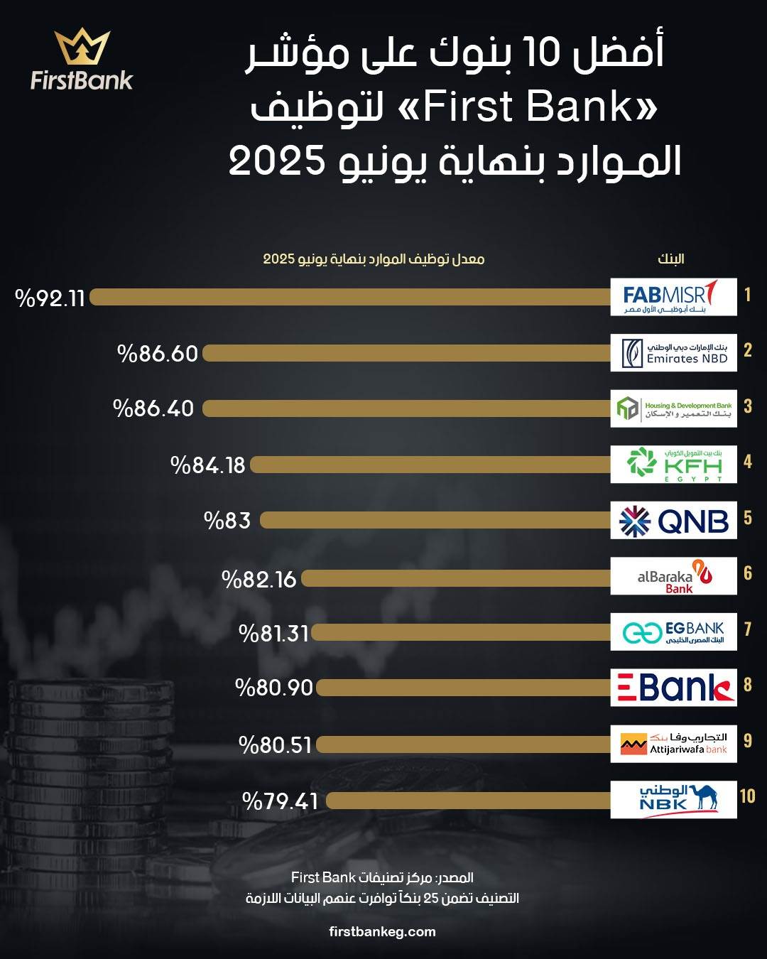38795 /38795 أفضل 10 بنوك على مؤشر «First Bank» لتوظيف الموارد بنهاية يونيو 2025 First Bank 03:56 م - الإثنين 6 أكتوبر 2025 شارك شارك