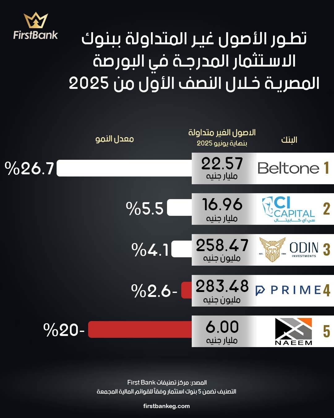 38875 /38875 تطور الأصول غير المتداولة ببنوك الاستثمار المدرجة في البورصة المصرية خلال النصف الأول من 2025 02:00 م - الأربعاء 8 أكتوبر 2025 شارك شارك
