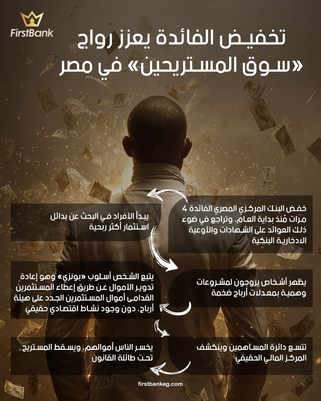 بعد خفض سعر الفائدة للمرة الرابعة مُنذ بداية العام، وانخفاض العائد على الودائع البنكية، يبدأ عدد من المواطنين في البحث عن بدائل استثمارية ذات عوائد أعلى، الأمر الذي يفتح الباب أمام ظهور أنماط غير تقليدية من فرص الاستثمار، بعضها يحمل طابعًا احتياليًا يمارس عن طريق فئة من الناس باتت تعرف في مصر بلقب "المستريح" خلال الفترة الأخيرة.