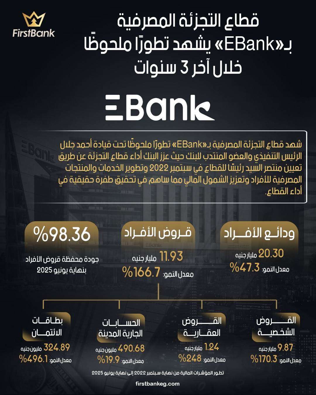 قطاع التجزئة المصرفية بـ«EBank» يشهد تطورًا ملحوظًا خلال آخر 3 سنوات