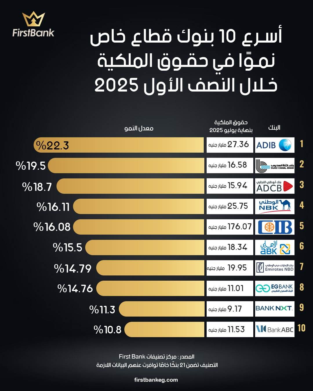 38965 /38965 أسرع 10 بنوك قطاع خاص نموًا في حقوق الملكية خلال النصف الأول 2025 05:05 م - الأحد 12 أكتوبر 2025 شارك شارك