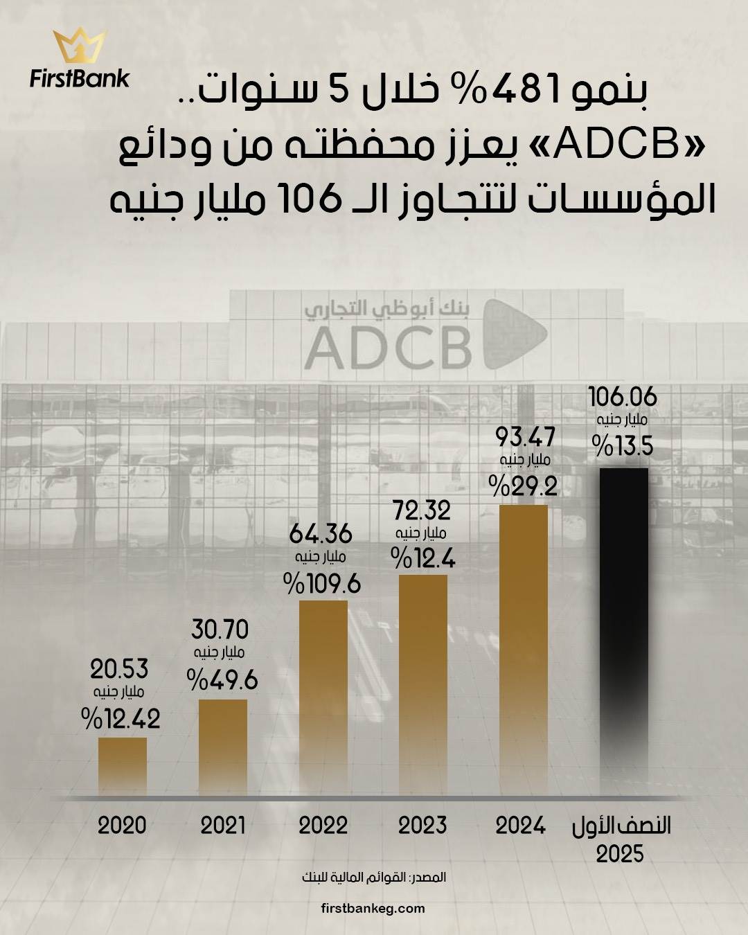 38992 /38992 بنمو 481% خلال 5 سنوات.. «ADCB» يعزز محفظته من ودائع المؤسسات لتتجاوز الـ 106 مليار جنيه First Bank 02:21 م - الإثنين 13 أكتوبر 2025 شارك شارك
