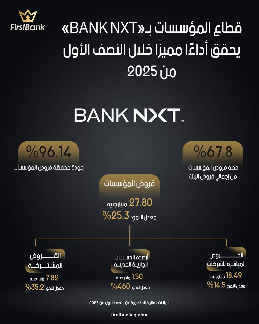 38995 /38995 قطاع المؤسسات بـ«BANK NXT» يحقق أداءًا مميزًا خلال النصف الأول من 2025 First Bank 02:44 م - الإثنين 13 أكتوبر 2025 شارك شارك