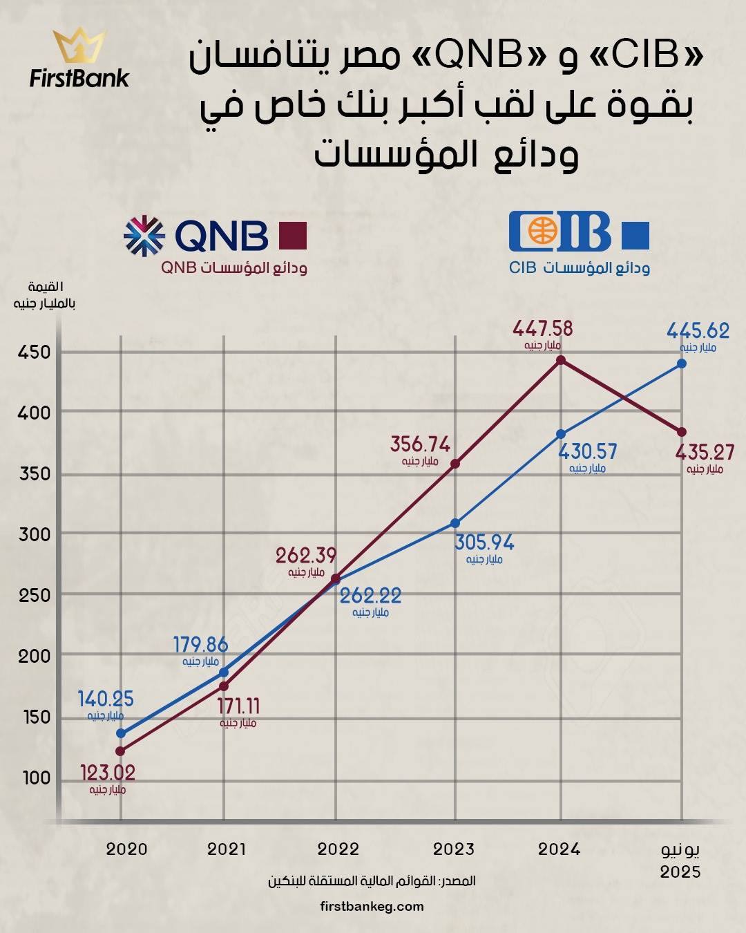 مؤشر الحصص: «CIB» و«QNB» مصر يتنافسان بقوة على لقب أكبر بنك خاص في ودائع المؤسسات