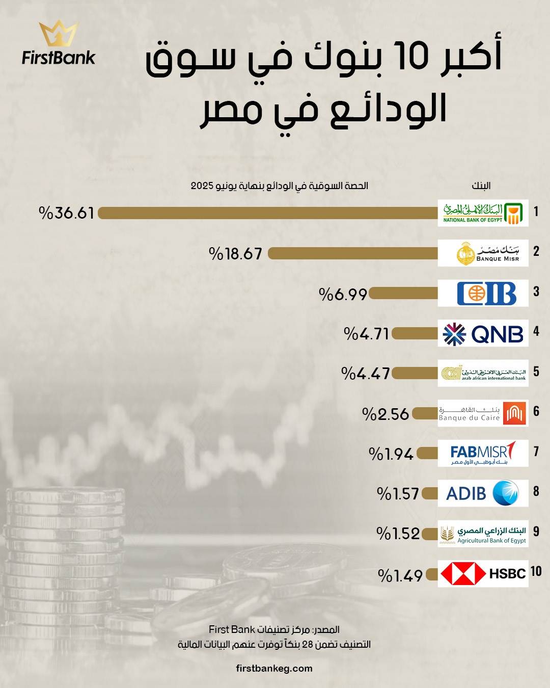 39055 /39055 أكبر 10 بنوك في سوق الودائع في مصر First Bank 07:23 م - الثلاثاء 14 أكتوبر 2025 شارك شارك