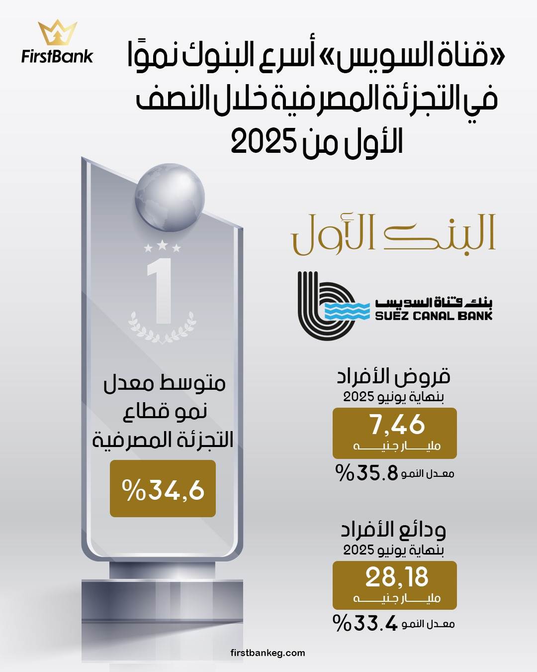 البنك الأول: «قناة السويس» أسرع البنوك نموًا في التجزئة المصرفية خلال النصف الأول من 2025