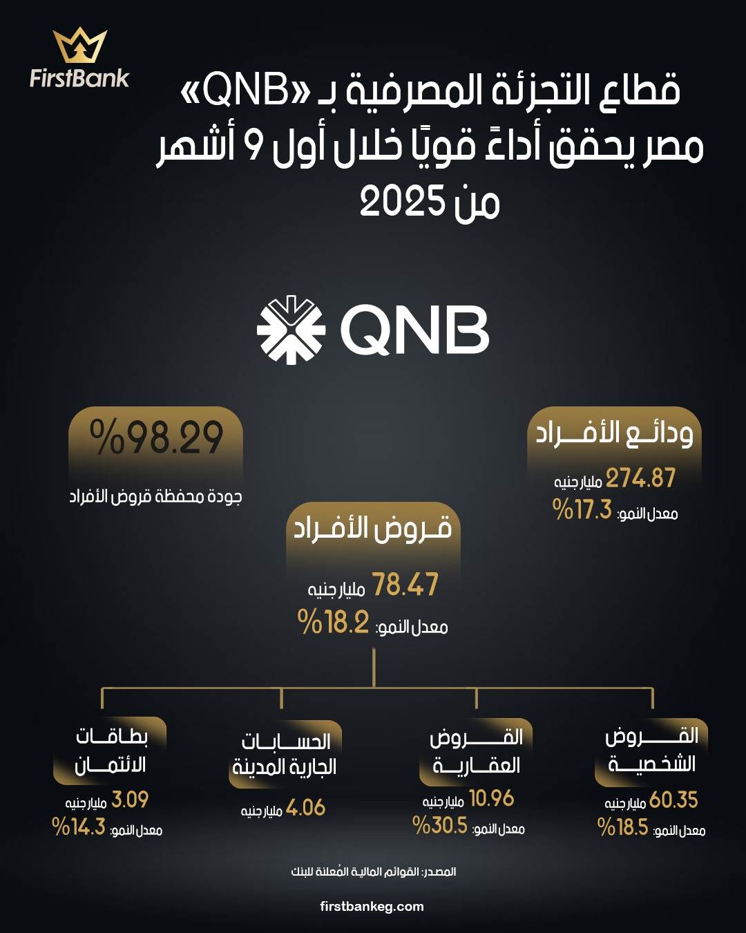 مؤشر «First»: قطاع التجزئة المصرفية بـ «QNB» مصر يحقق أداءً قويًا خلال أول 9 أشهر من 2025