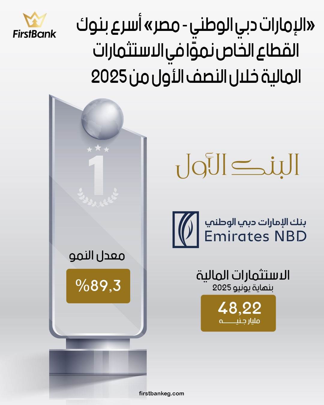 البنك الأول: «Emirates NBD» أسرع بنوك القطاع الخاص نموًا في الاستثمارات المالية خلال النصف الأول من 2025