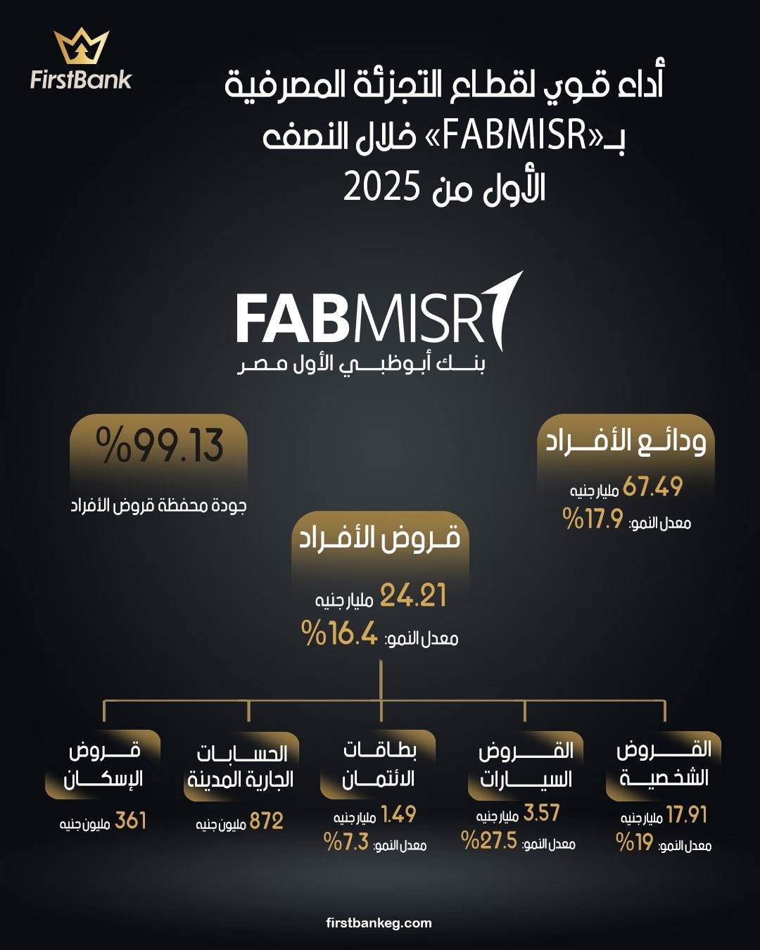 مؤشر «First»: أداء قوي لقطاع التجزئة المصرفية بـ«FABMISR» خلال النصف الأول من 2025