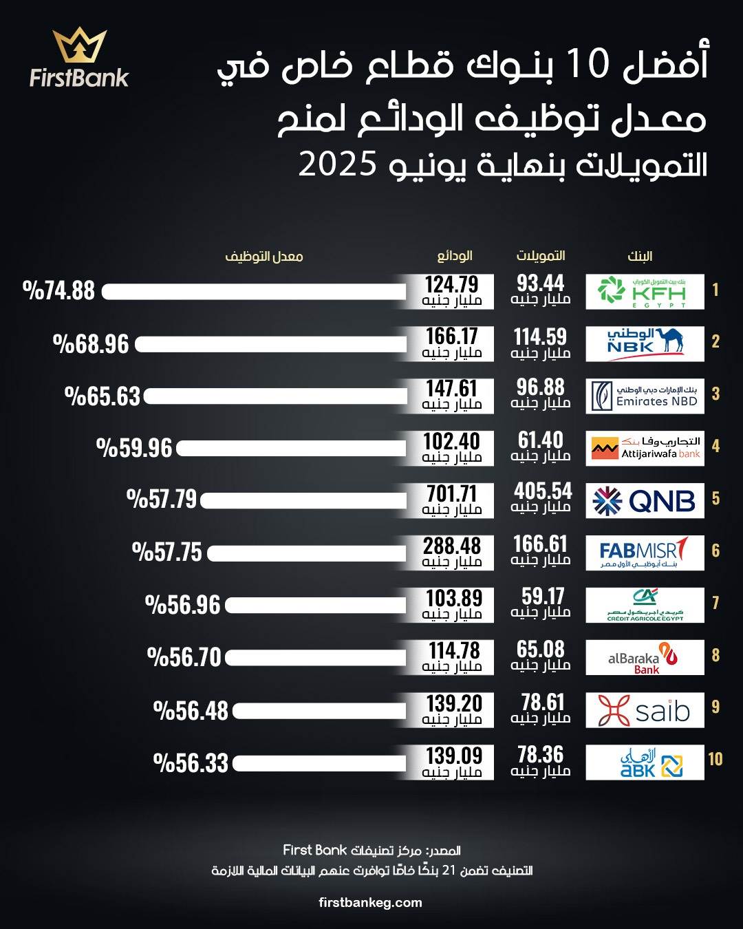39342 /39342 أفضل 10 بنوك قطاع خاص في معدل توظيف الودائع لمنح التمويلات بنهاية يونيو 2025 01:38 م - الخميس 23 أكتوبر 2025 شارك شارك