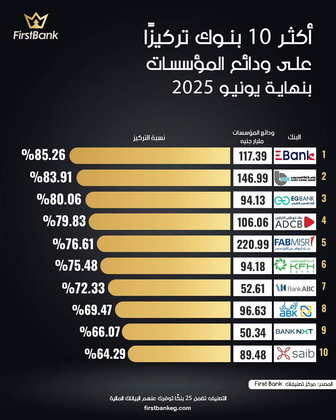 39398 /39398 أكثر 10 بنوك تركيزًا على ودائع المؤسسات بنهاية يونيو 2025 First Bank 04:43 م - الأحد 26 أكتوبر 2025 شارك شارك