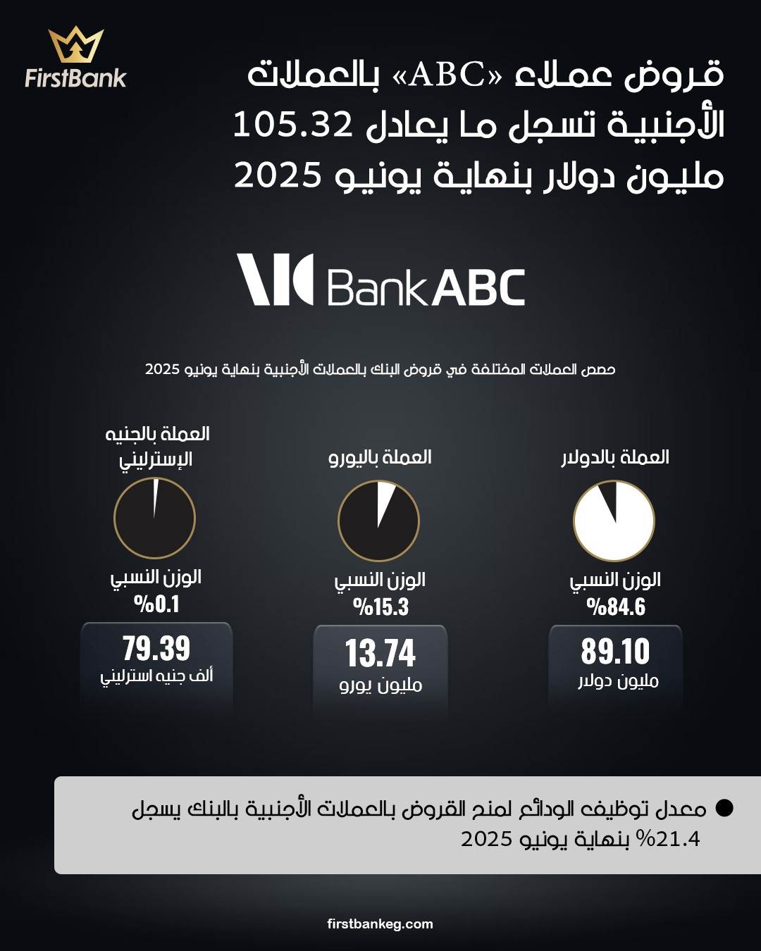 قروض عملاء «ABC» بالعملات الأجنبية تسجل ما يعادل 105.32 مليون دولار بنهاية يونيو 2025