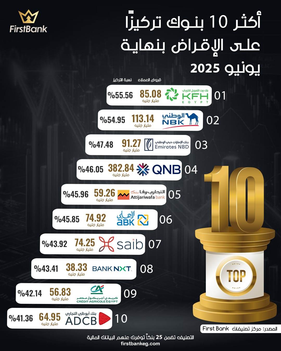 39430 /39430 أكثر 10 بنوك تركيزًا على الإقراض بنهاية يونيو 2025 First Bank 04:19 م - الإثنين 27 أكتوبر 2025 شارك شارك