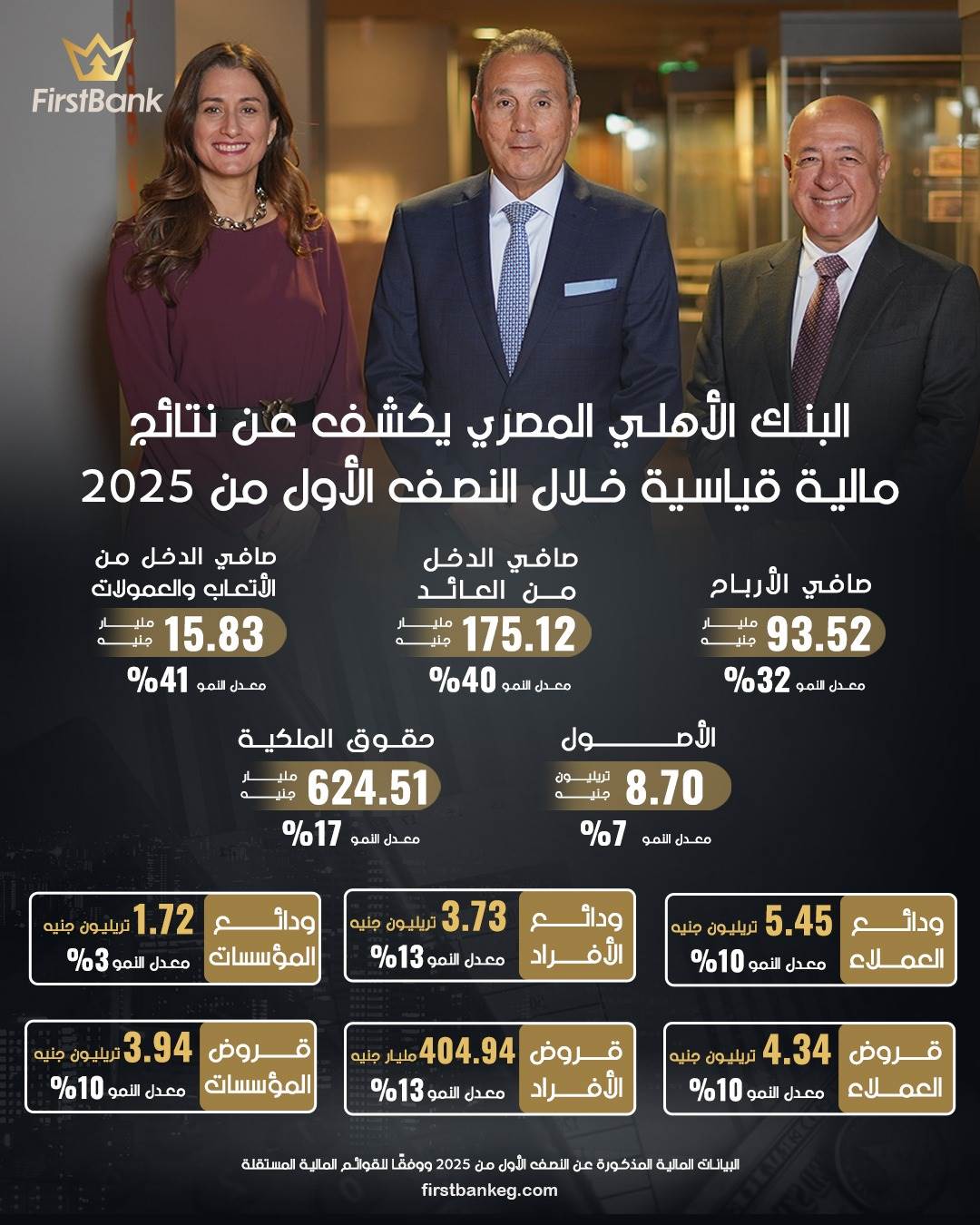 39486 /39486 البنك الأهلي المصري يكشف عن نتائج مالية قياسية خلال النصف الأول من 2025 First Bank 10:45 ص - الأربعاء 29 أكتوبر 2025 شارك شارك