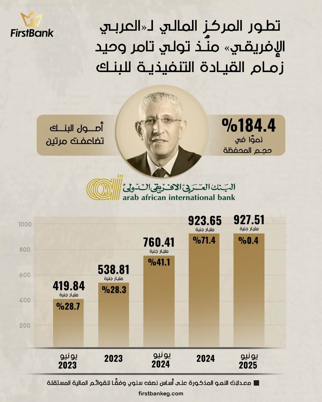 عزز البنك العربي الإفريقي الدولي من مركزه المالي بشكل ملحوظ منُذ تولي تامر وحيد منصب نائب رئيس مجلس الإدارة والعضو المنتدب في مايو 2023، وهو ما يتضح في ارتفاع إجمالي محفظة أصول البنك من 326.13 مليار جنيه بنهاية 2022، إلى 927.51 مليار جنيه بنهاية يونيو 2025، بمعدل نمو بلغ 184%، وزيادة قدرها 601.37 مليار جنيه.