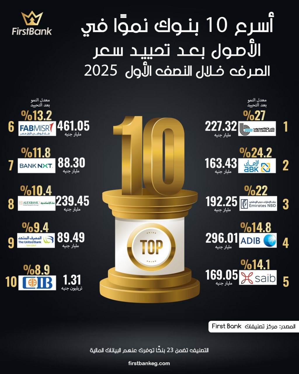 39751 /39751 أسرع 10 بنوك نموًا في الأصول بعد تحييد سعر الصرف خلال النصف الأول من 2025 First Bank 02:41 م - الخميس 6 نوفمبر 2025 شارك شارك