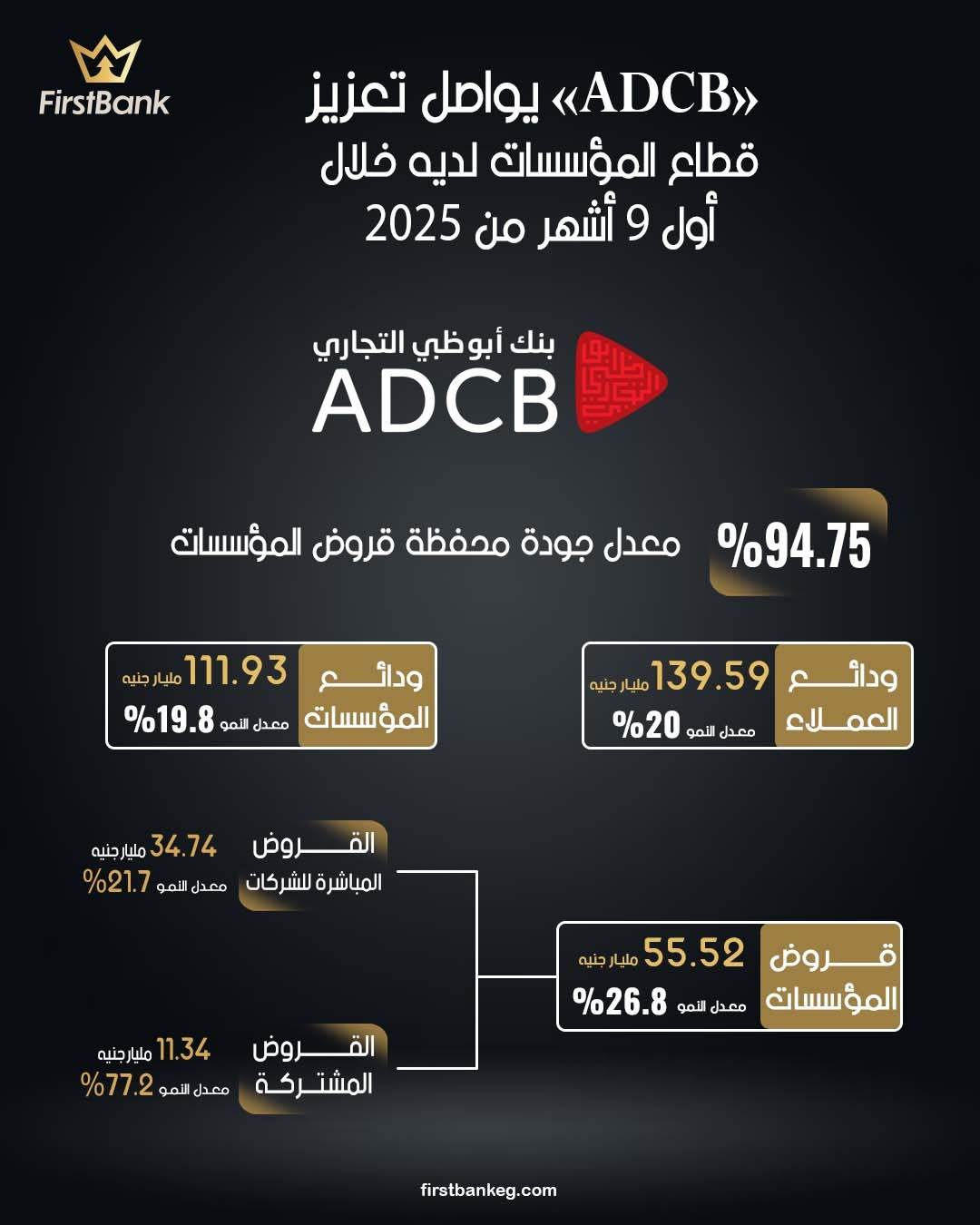 39942 /39942 «ADCB» يواصل تعزيز قطاع المؤسسات لديه خلال أول 9 أشهر من 2025 First Bank 11:31 ص - الخميس 13 نوفمبر 2025 شارك شارك