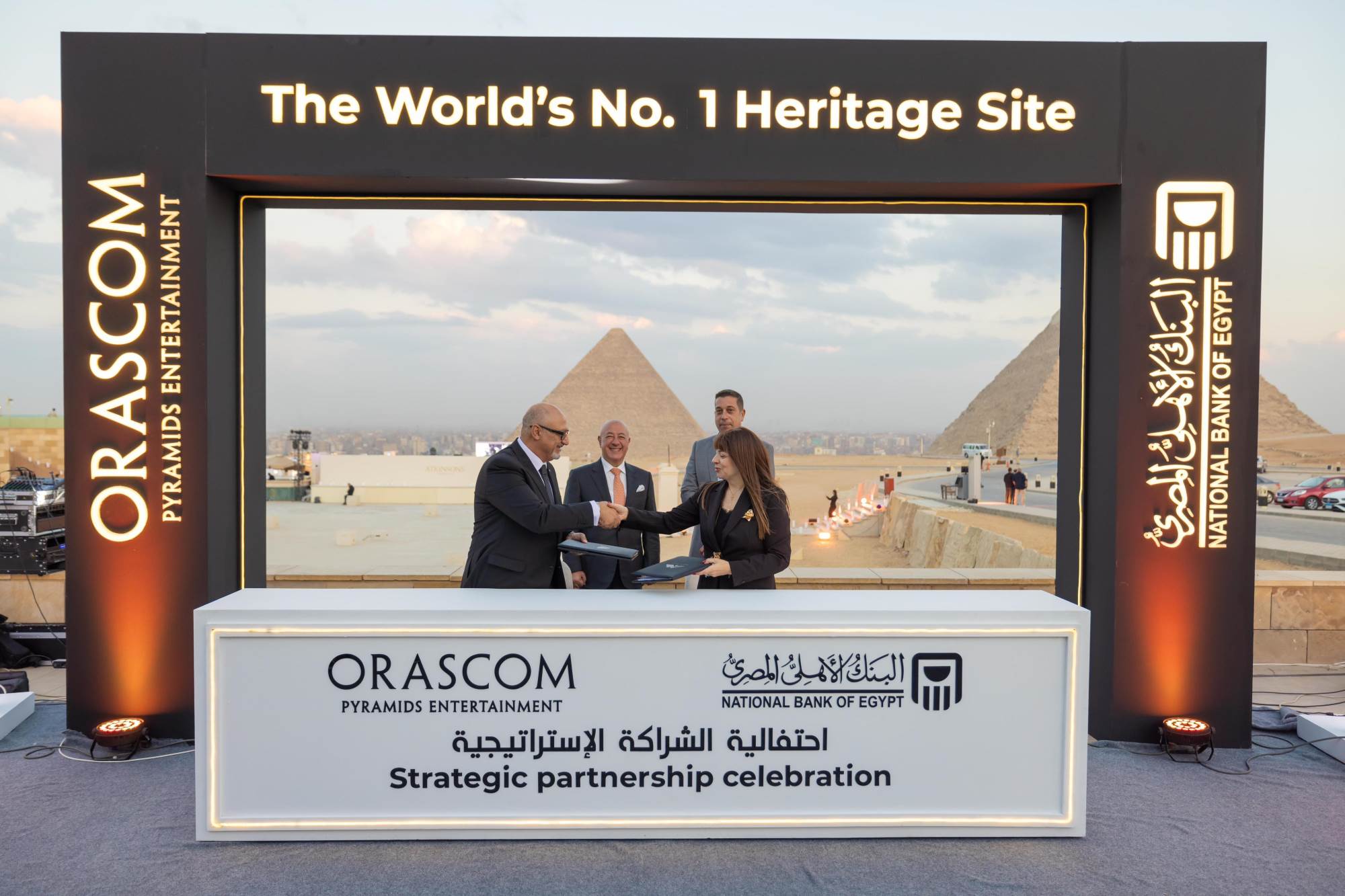 جدد البنك الأهلي المصري بروتوكول التعاون المبرم مع شركة أوراسكوم بيراميدز (OPE) – المسؤولة عن إدارة وتشغيل خدمات الزائرين بمنطقة أهرامات الجيزة – ضمن برنامج التحول الشامل لمنطقة الزيارة بهضبة الأهرامات بالجيزة، أحد أبرز وأهم المشاريع التاريخية والسياحية والثقافية في مصر والعالم.