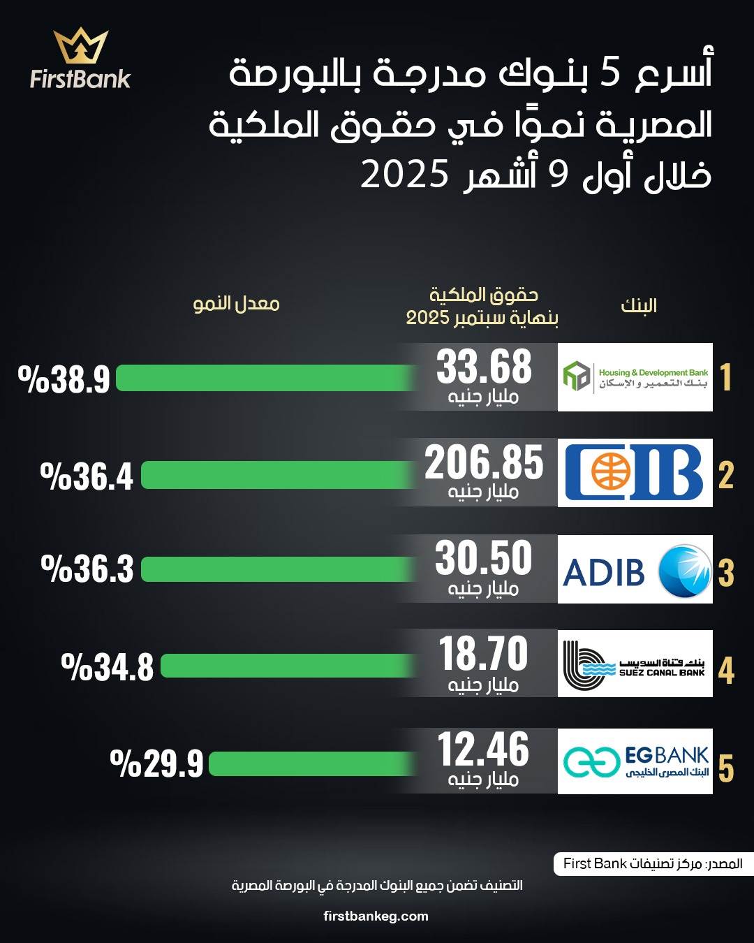40143 /40143 أسرع 5 بنوك مدرجة بالبورصة المصرية نموًا في حقوق الملكية خلال أول 9 أشهر 2025 First Bank 04:48 م - الأربعاء 19 نوفمبر 2025 شارك شارك