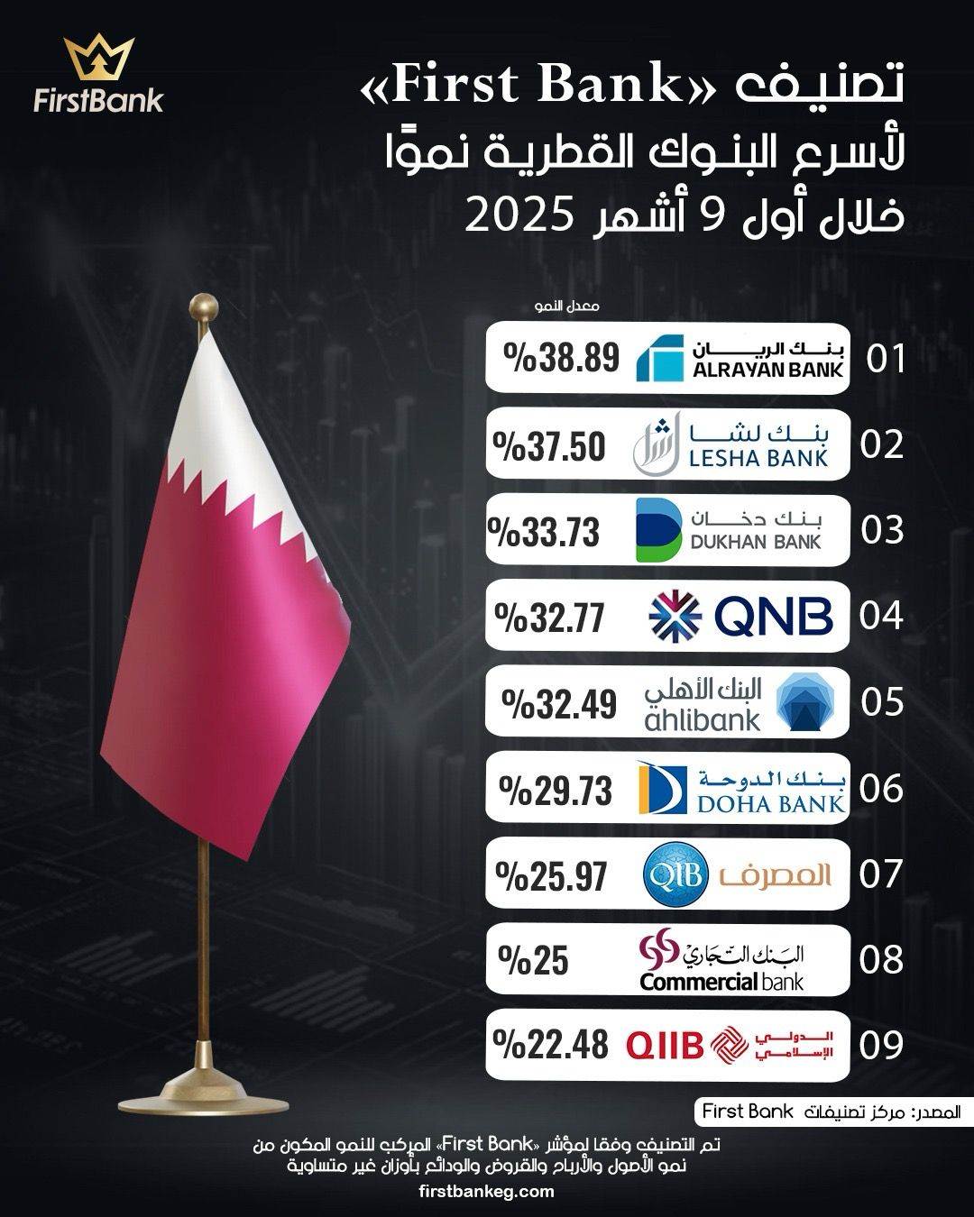 40167 /40167 تصنيف «First Bank» لأسرع البنوك القطرية نموًا خلال أول 9 أشهر 2025 First Bank 04:52 م - الإثنين 10 نوفمبر 2025 شارك شارك