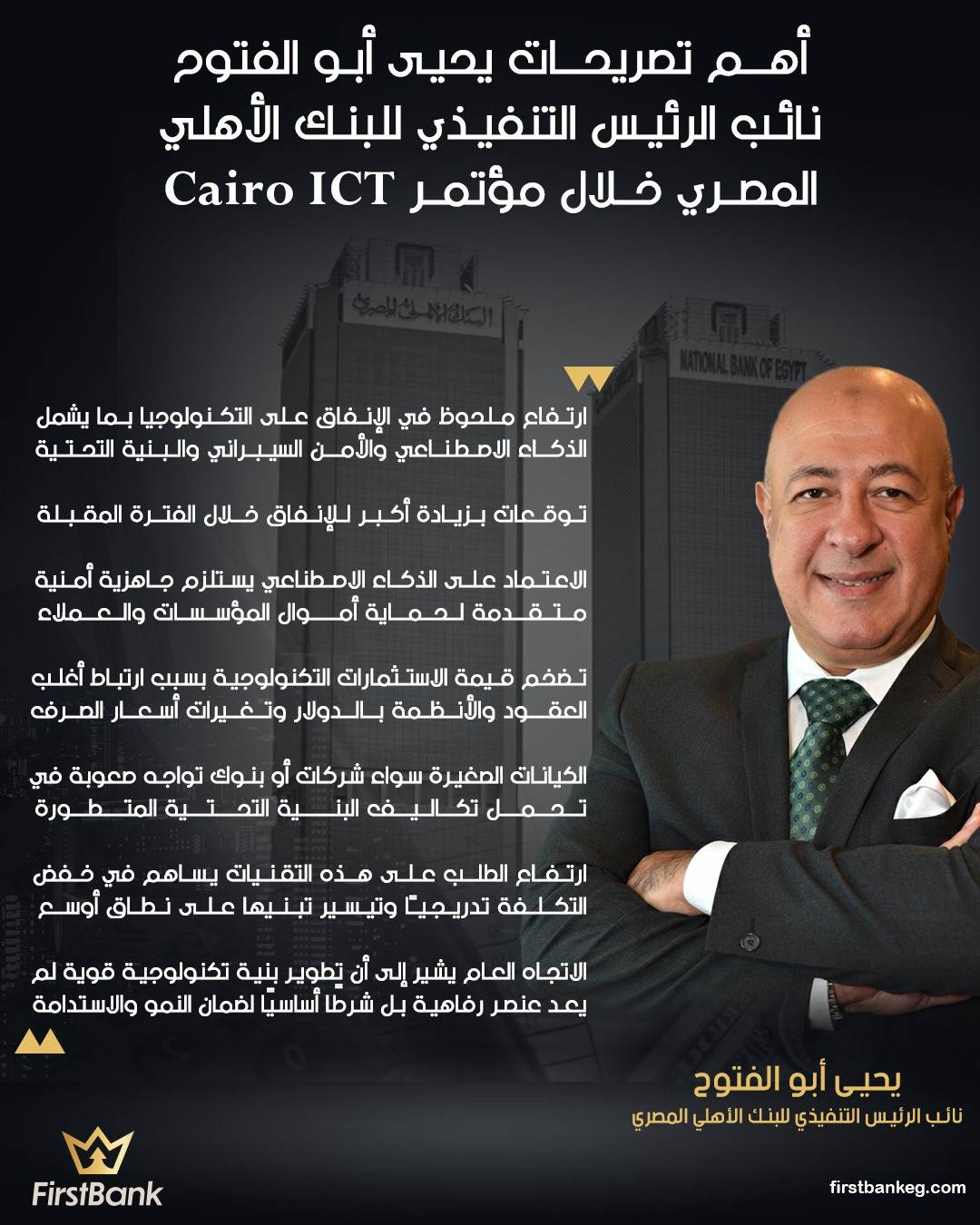 40169 /40169 أهم تصريحات يحيى أبو الفتوح نائب الرئيس التنفيذي للبنك الأهلي المصري خلال مؤتمر Cairo ICT First Bank 01:05 م - الخميس 20 نوفمبر 2025 شارك شارك
