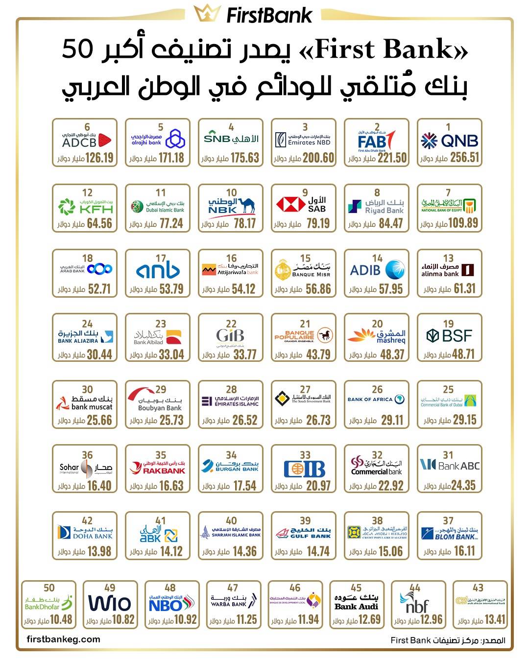 40348 /40348 «First Bank» يصدر تصنيف أكبر 50 بنك مُتلقي للودائع في الوطن العربي 08:03 م - الأربعاء 26 نوفمبر 2025 شارك شارك