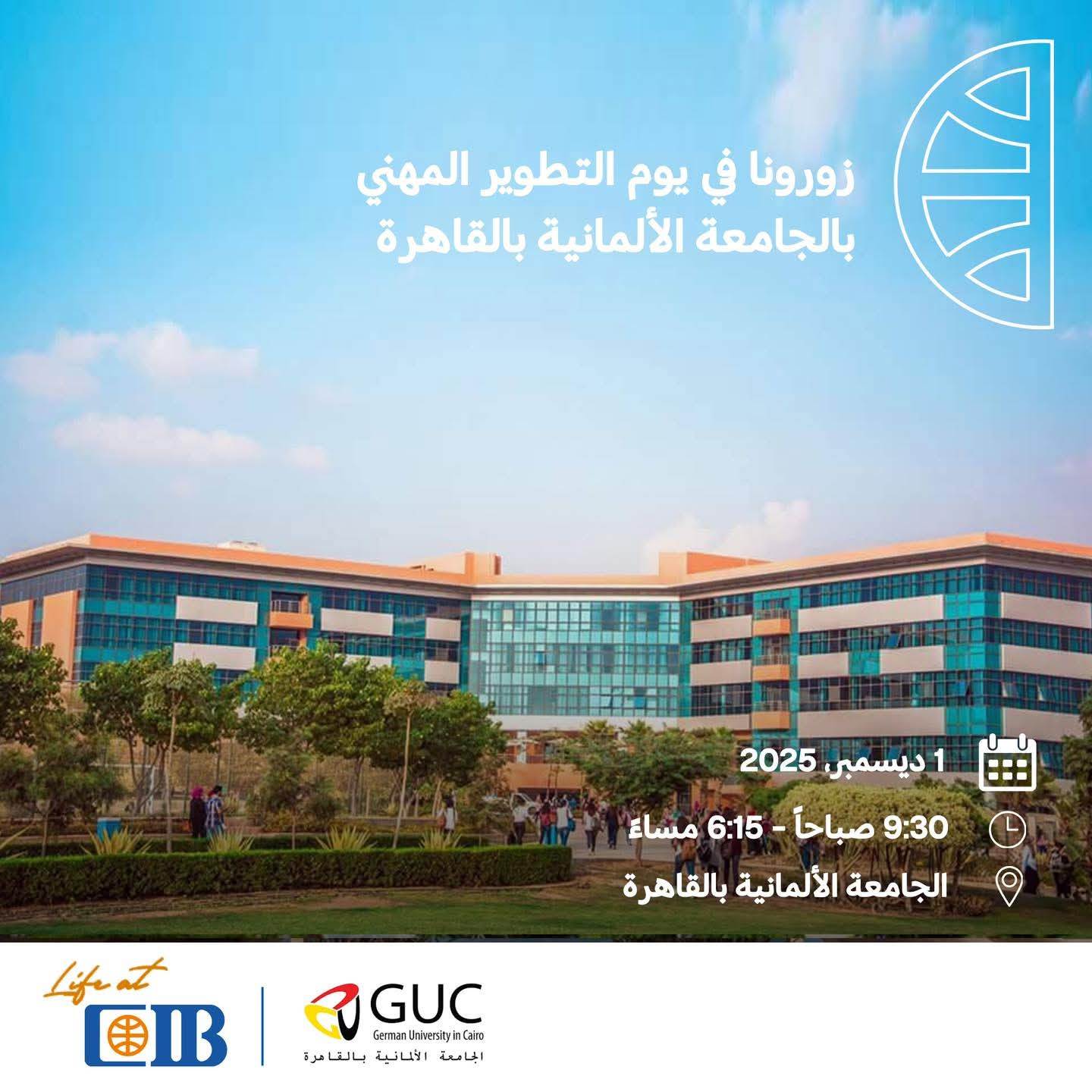 أعلن البنك التجاري الدولي - مصر "CIB" عن مشاركته في يوم التطوير المهني بالجامعة الألمانية بالقاهرة كشريك راع لهذا البرنامج.
