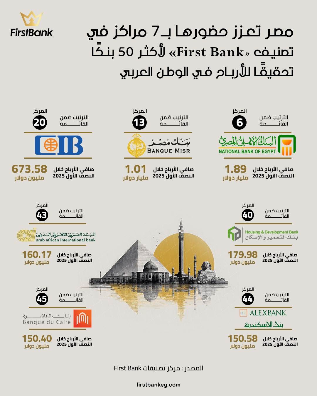 40492 /40492 مصر تعزز حضورها بـ7 مراكز في تصنيف «First Bank» لأكثر 50 بنكاً تحقيقاً للأرباح في الوطن العربي First Bank 05:03 م - الثلاثاء 2 ديسمبر 2025 شارك شارك