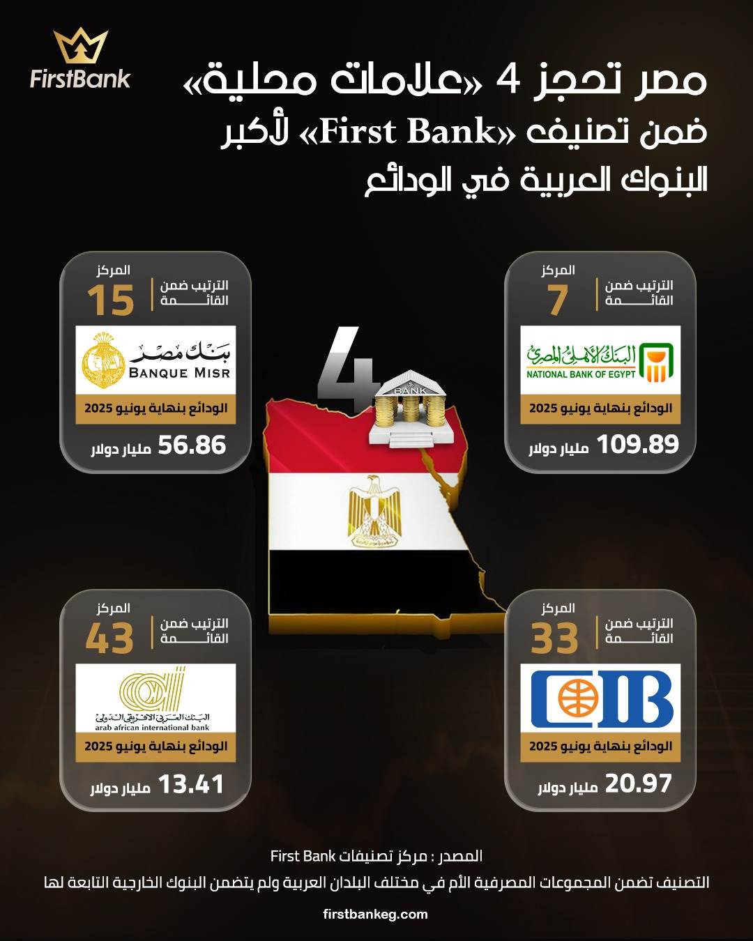 40553 /40553 مصر تحجز 4 «علامات محلية» ضمن تصنيف «First Bank» لأكبر 50 بنك عربي في الودائع First Bank 03:47 م - الخميس 4 ديسمبر 2025 شارك شارك
