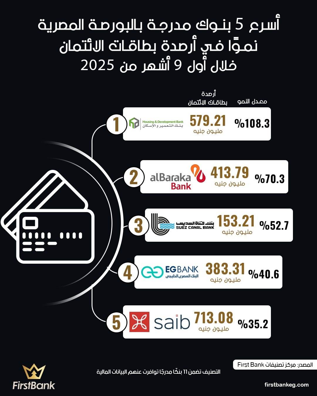 40630 /40630 أسرع 5 بنوك مدرجة بالبورصة المصرية نموًا في أرصدة بطاقات الائتمان خلال أول 9 أشهر من 2025 First Bank 12:10 م - الإثنين 8 ديسمبر 2025 شارك شارك