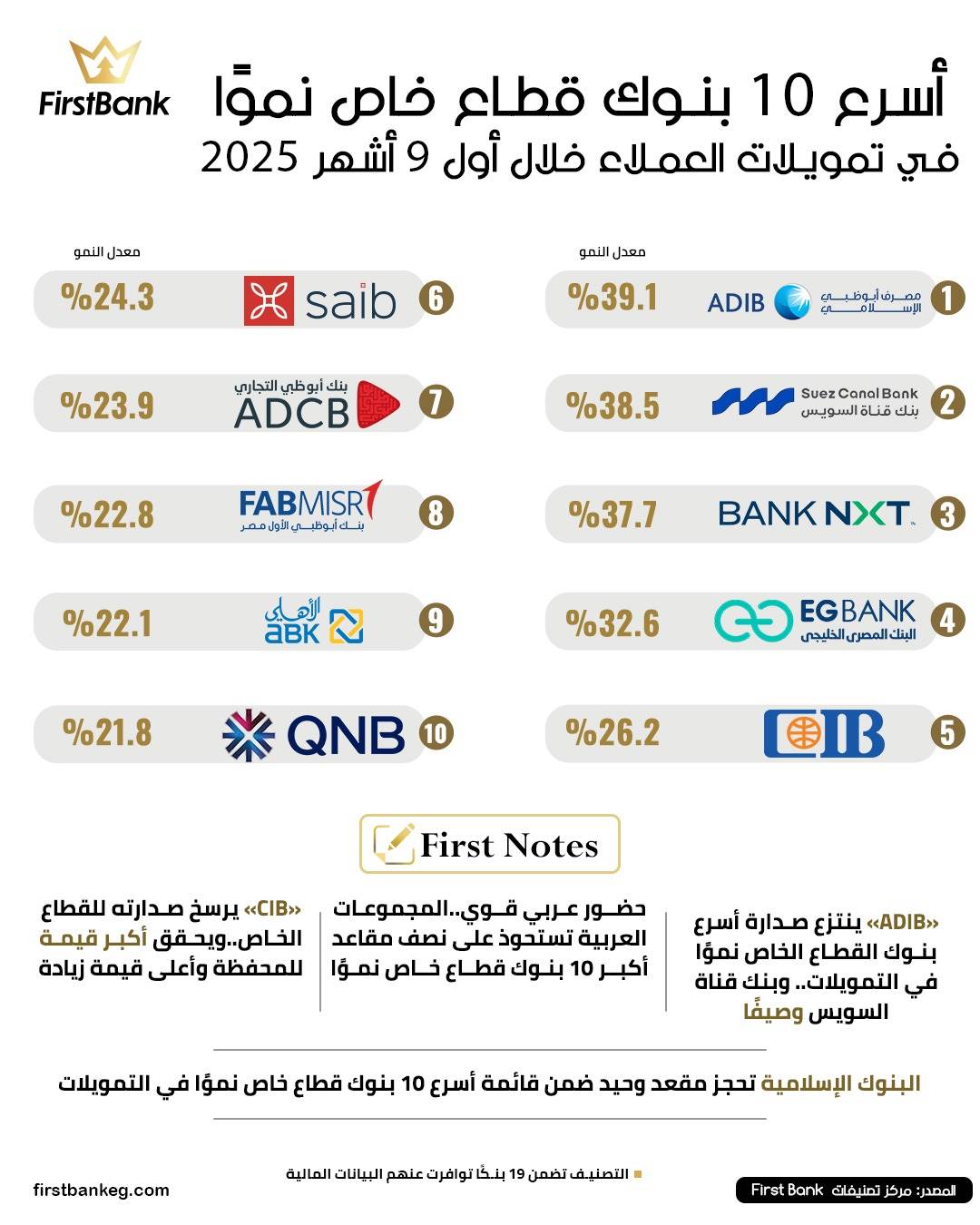 40862 /40862 أسرع 10 بنوك قطاع خاص نموًا في تمويلات العملاء خلال أول 9 أشهر 2025 First Bank 04:07 م - الثلاثاء 16 ديسمبر 2025 شارك شارك