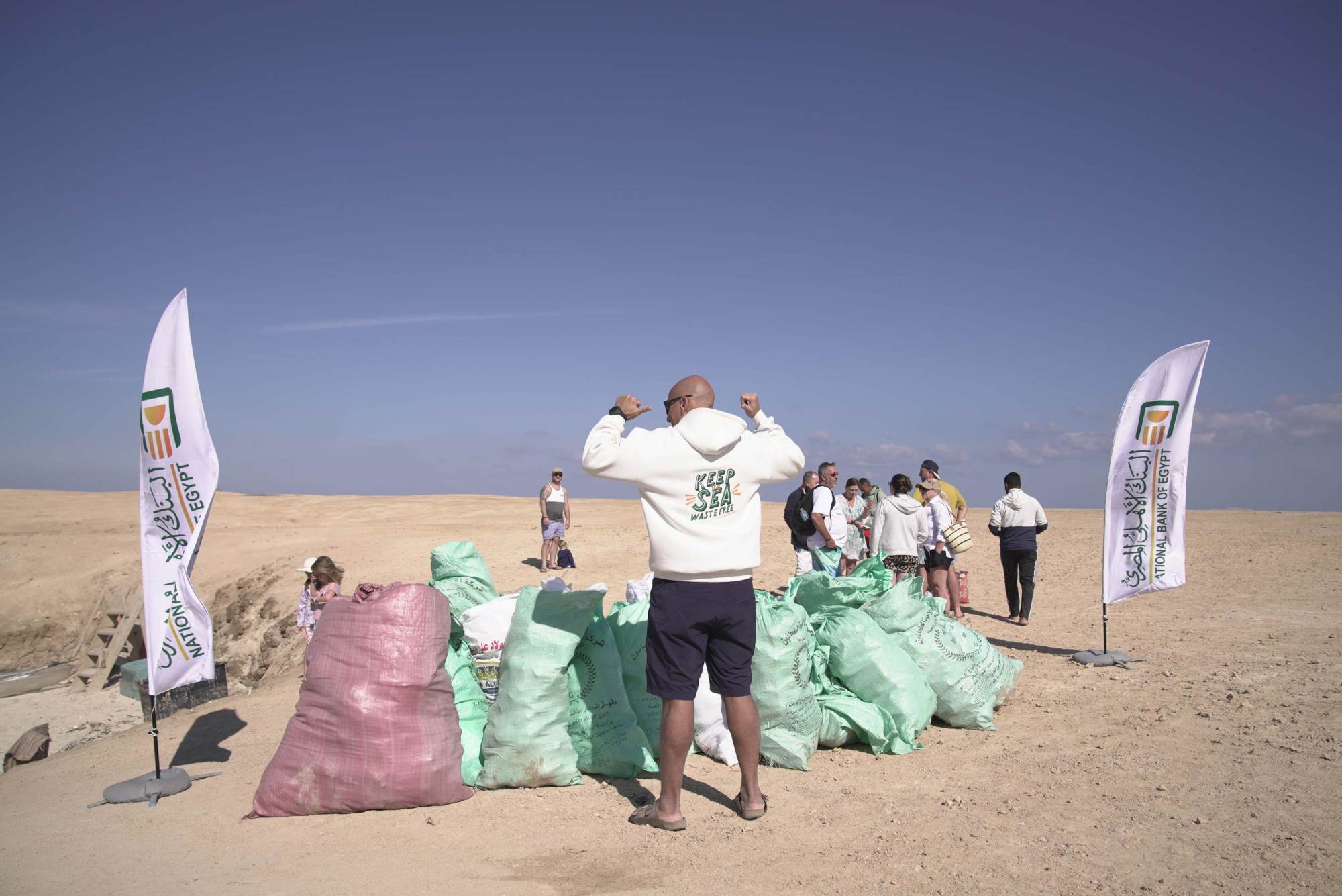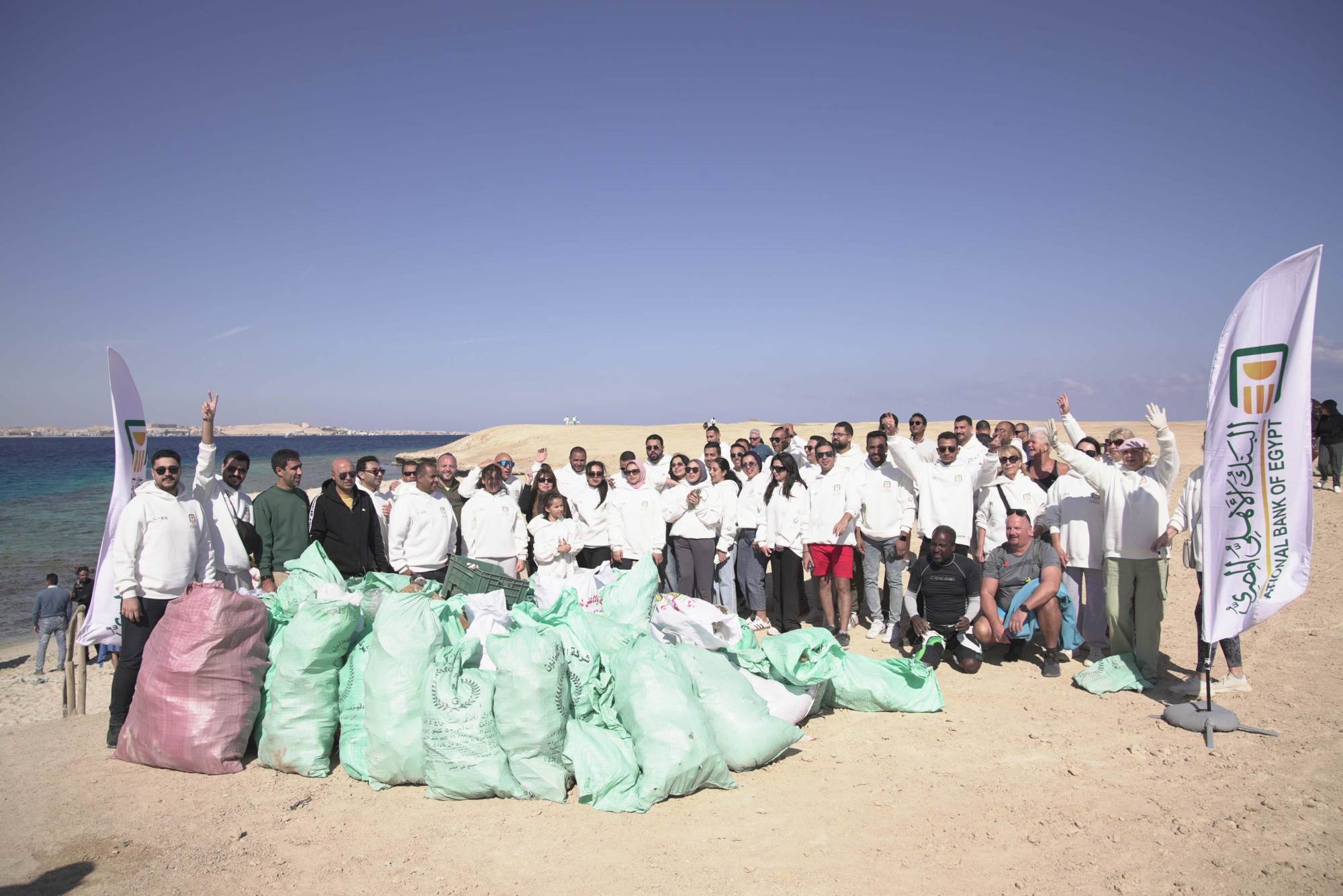 البنك الأهلي المصري يشارك في تنظيف شاطئ جزيرة مجاويش بالتعاون مع «جبر تك»