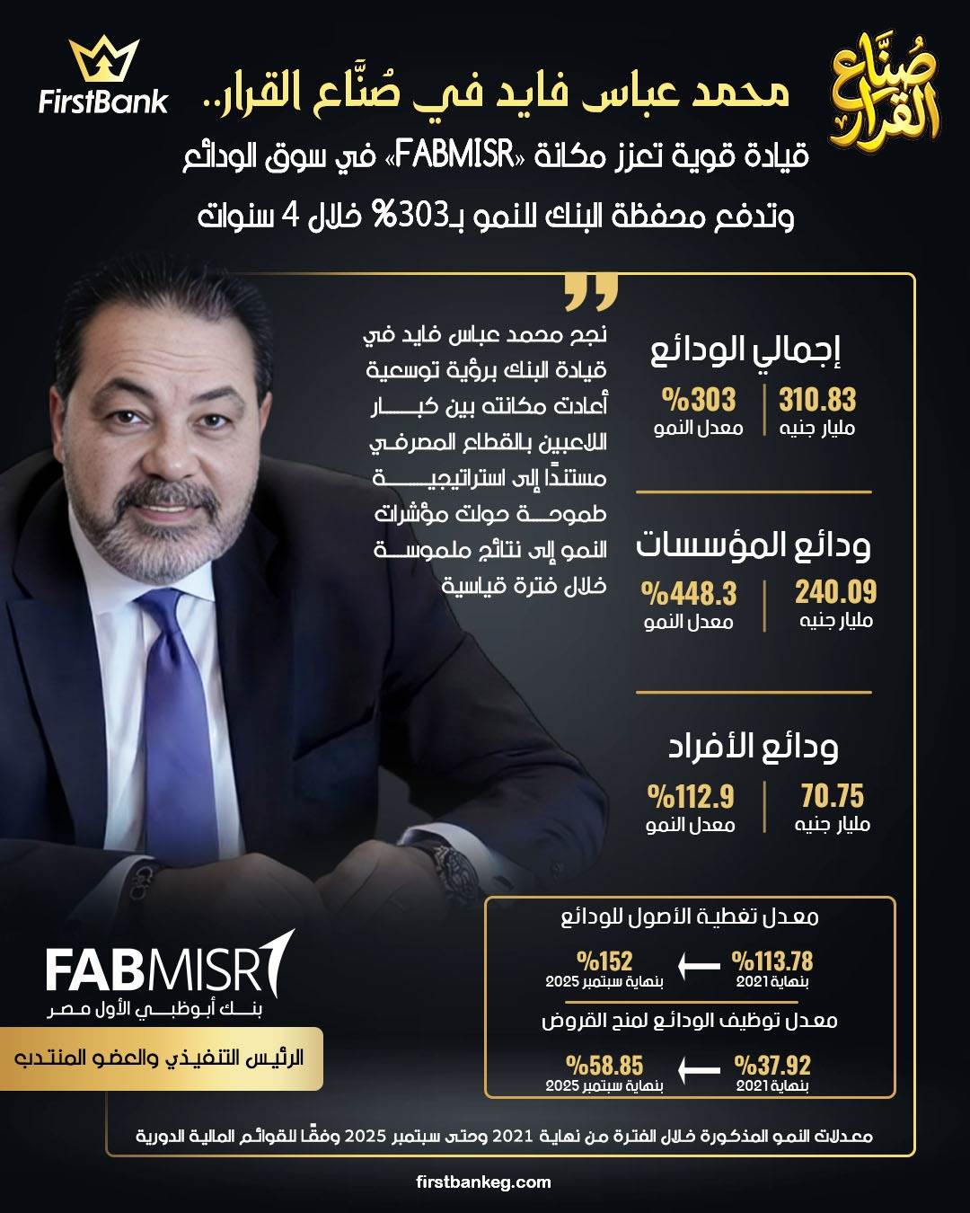 41092 /41092 محمد عباس فايد في صُنَّاع القرار.. قيادة قوية تعزز مكانة «FABMISR» في سوق الودائع وتدفع محفظة البنك للنمو بـ303% خلال 4 سنوات فاطمة عطية 06:55 م - الأربعاء 24 ديسمبر 2025 شارك شارك
