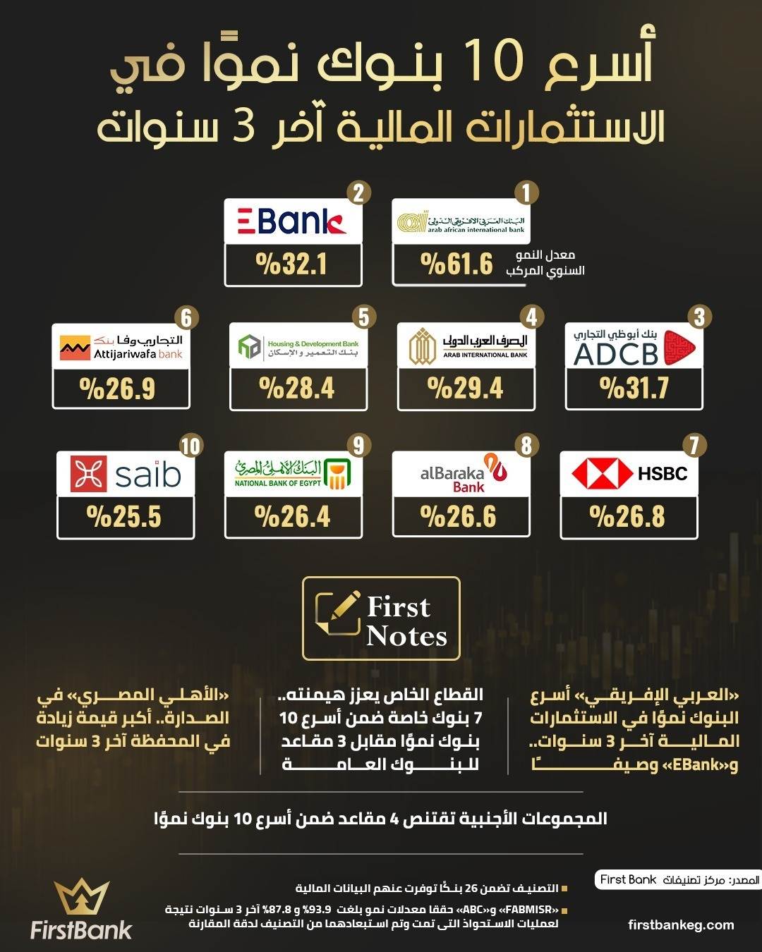 41212 /41212 أسرع 10 بنوك نموًا في الاستثمارات المالية أخر 3 سنوات First Bank 01:00 م - الثلاثاء 23 ديسمبر 2025 شارك شارك