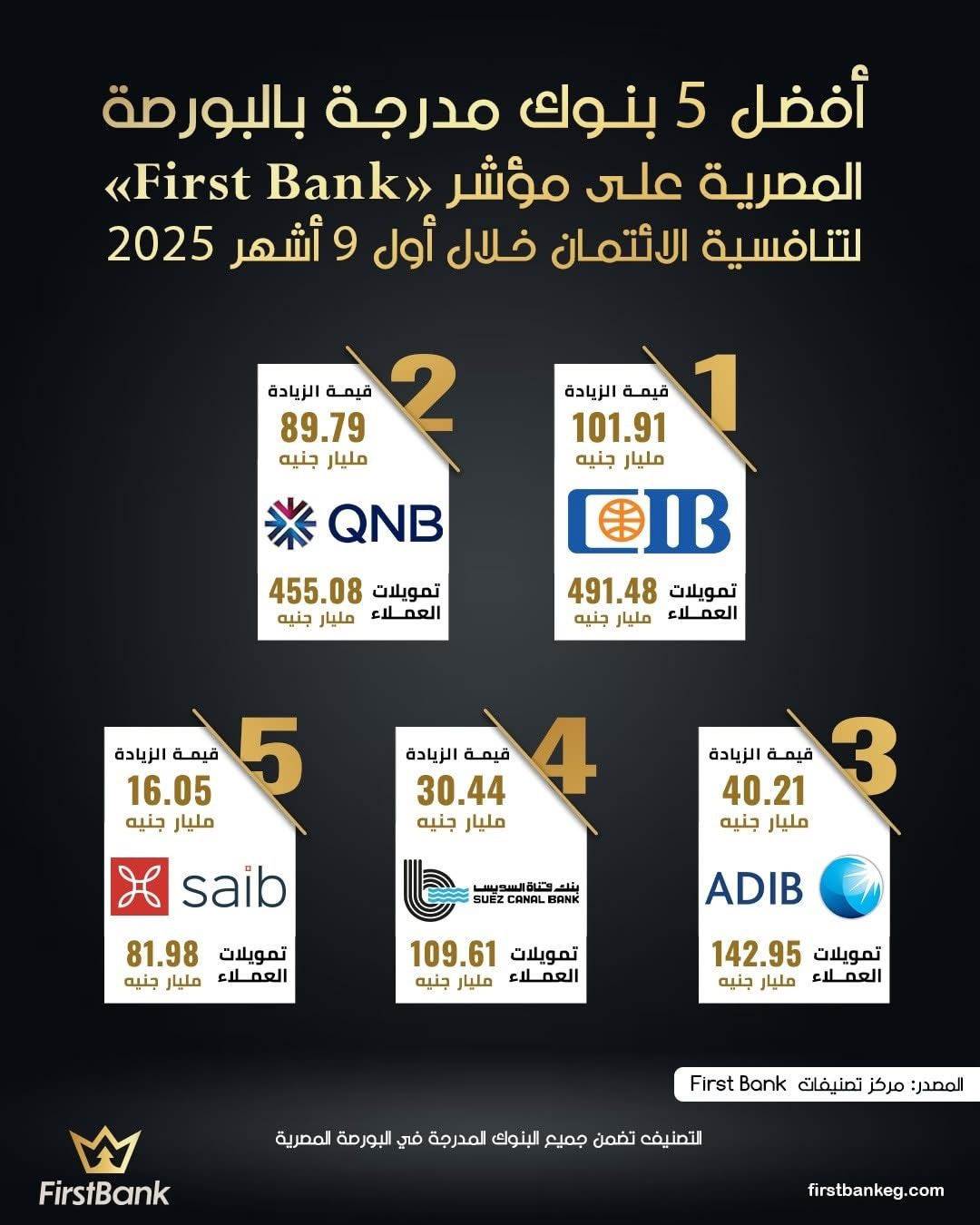 41311 /41311 أفضل 5 بنوك مدرجة بالبورصة المصرية على مؤشر «First Bank» لتنافسية الائتمان خلال أول 9 أشهر 2025 First Bank 12:30 م - الأربعاء 3 ديسمبر 2025 شارك شارك