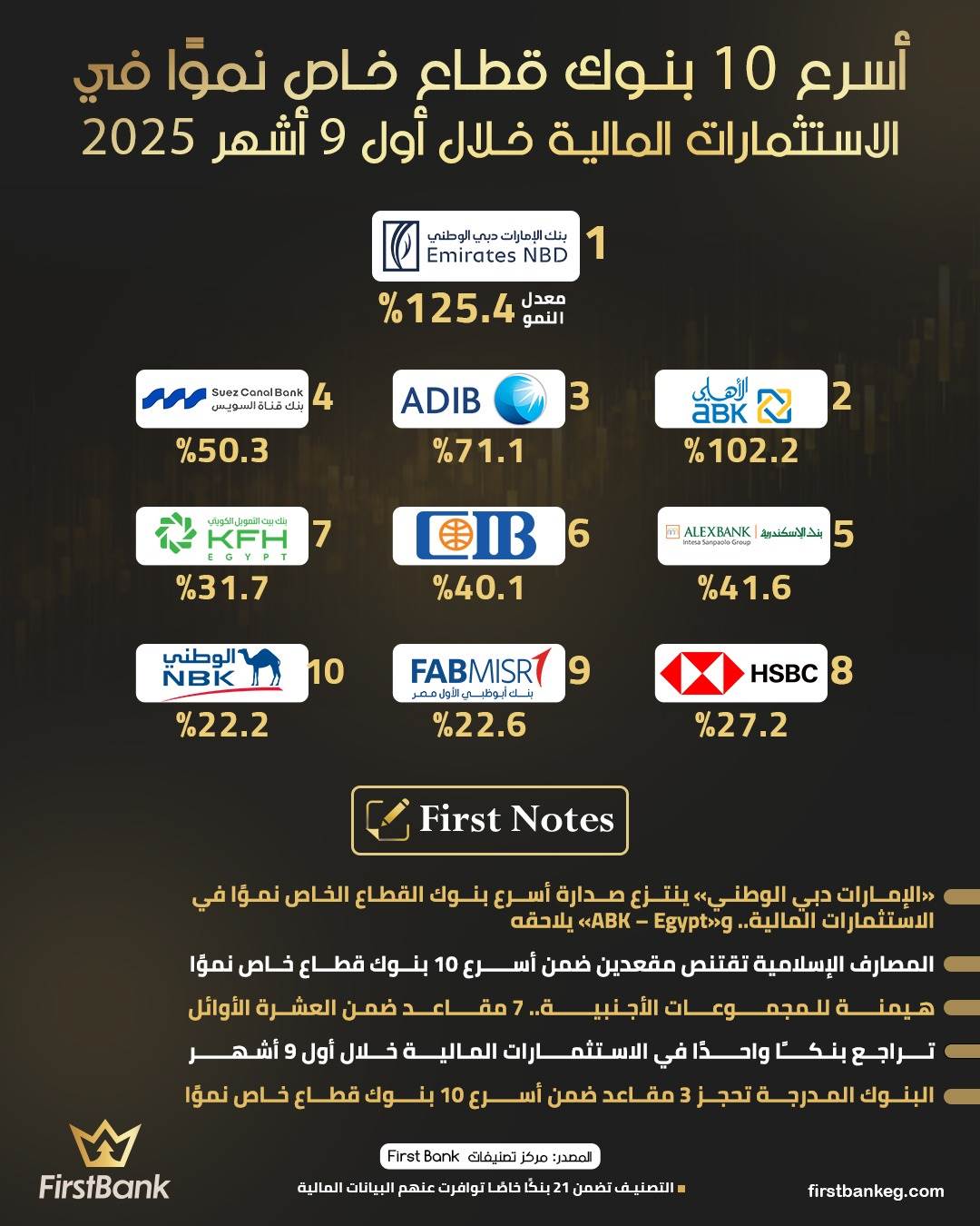 41343 /41343 أسرع 10 بنوك قطاع خاص نموًا في الاستثمارات المالية خلال أول 9 أشهر 2025 First Bank 01:34 م - الأحد 4 يناير 2026 شارك شارك