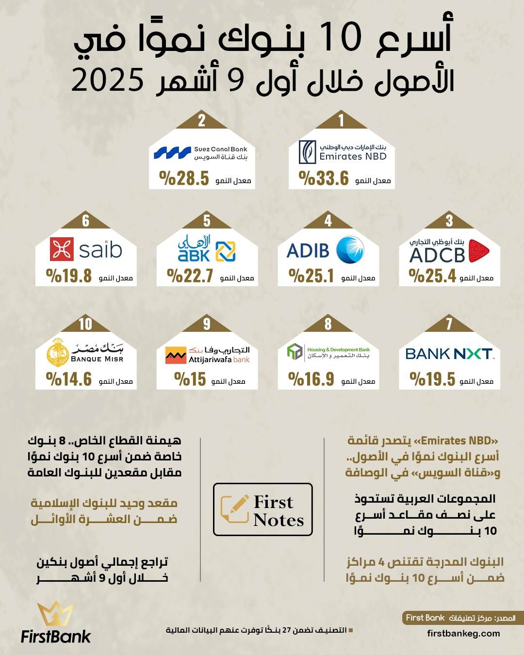 41382 /41382 أسرع 10 بنوك نموًا في الأصول خلال أول 9 أشهر 2025 01:33 م - الإثنين 5 يناير 2026 شارك شارك