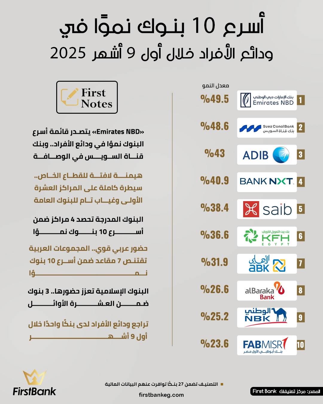 41524 /41524 أسرع 10 بنوك نموًا في ودائع الأفراد خلال أول 9 أشهر 2025 02:32 م - الإثنين 12 يناير 2026 شارك شارك