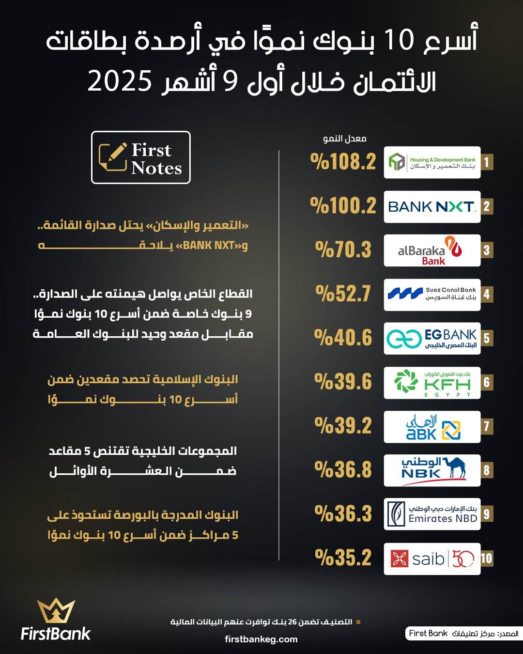 41879 /41879 أسرع 10 بنوك نموًا في أرصدة بطاقات الائتمان خلال أول 9 أشهر 2025 First Bank 03:09 م - الثلاثاء 27 يناير 2026 شارك شارك