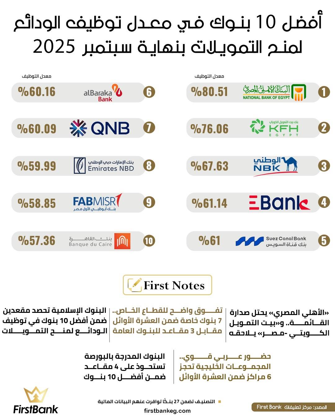 41966 /41966 أفضل 10 بنوك في معدل توظيف الودائع لمنح التمويلات بنهاية سبتمبر 2025 04:30 م - الأحد 1 فبراير 2026 شارك شارك