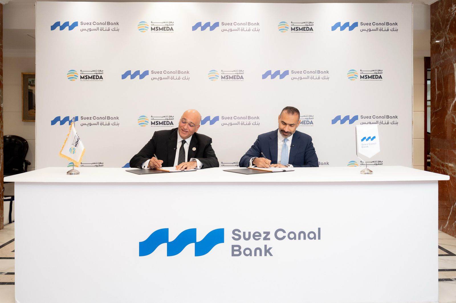 وقع اتفاقية التمويل كلٍ من باسل رحمي، الرئيس التنفيذي لجهاز تنمية المشروعات المتوسطة والصغيرة ومتناهية الصغر، وعاكف المغربي، الرئيس التنفيذي والعضو المُنتدب لبنك قناة السويس، بمقر البنك. كما شهد التوقيع من جانب الجهاز محمد مدحت، نائب الرئيس التنفيذي للجهاز، ومحمد أسامة بكري، رئيس قطاع المشروعات المتوسطة والصغيرة بالجهاز، ومن جانب البنك كلٍ من شهاب زيدان، نائب الرئيس التنفيذي والعضو المُنتدب، وعمر ناصر، رئيس قطاع المشروعات الصغيرة والمتوسطة.