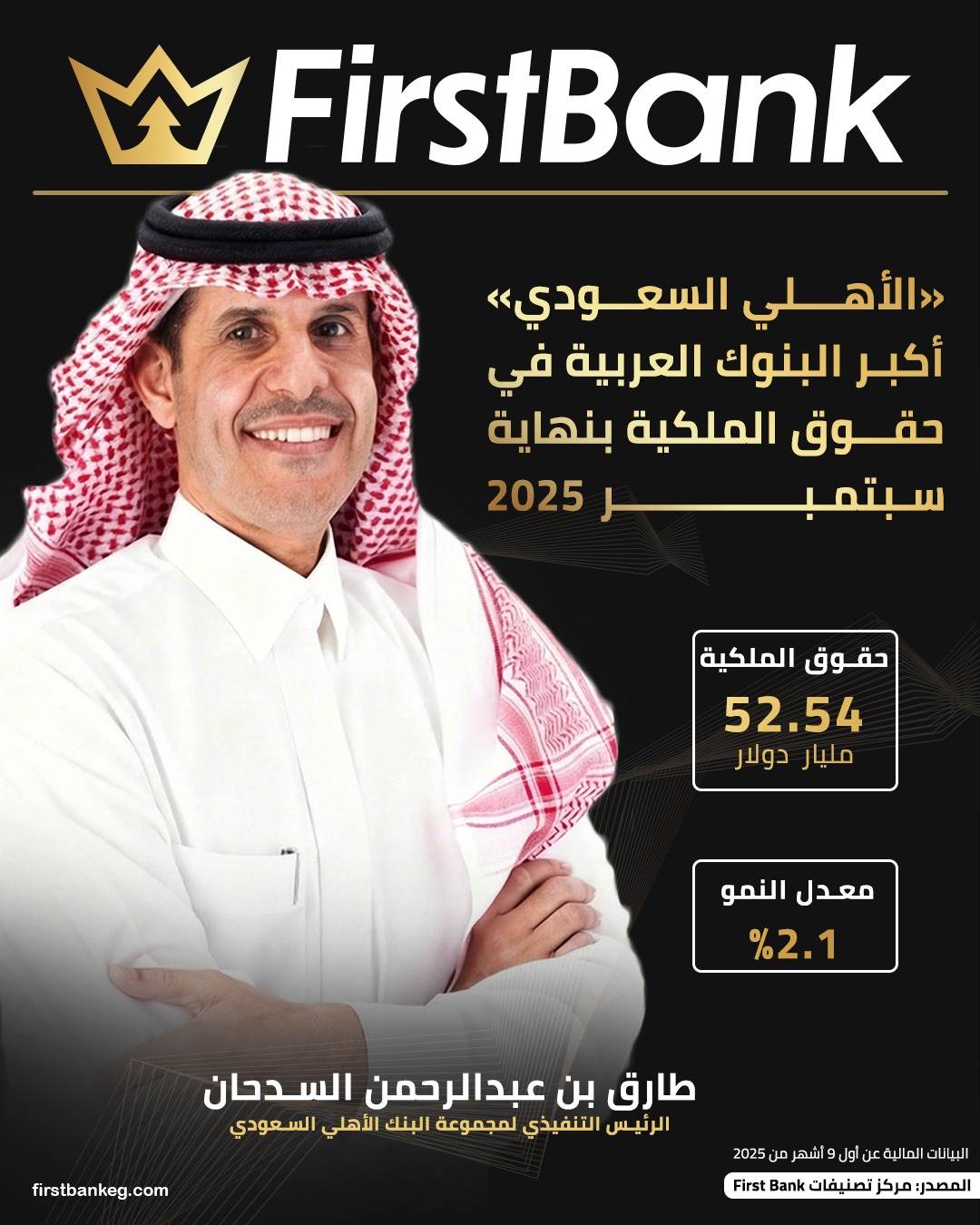 «الأهلي السعودي» أكبر البنوك العربية في حقوق الملكية بنهاية سبتمبر 2025