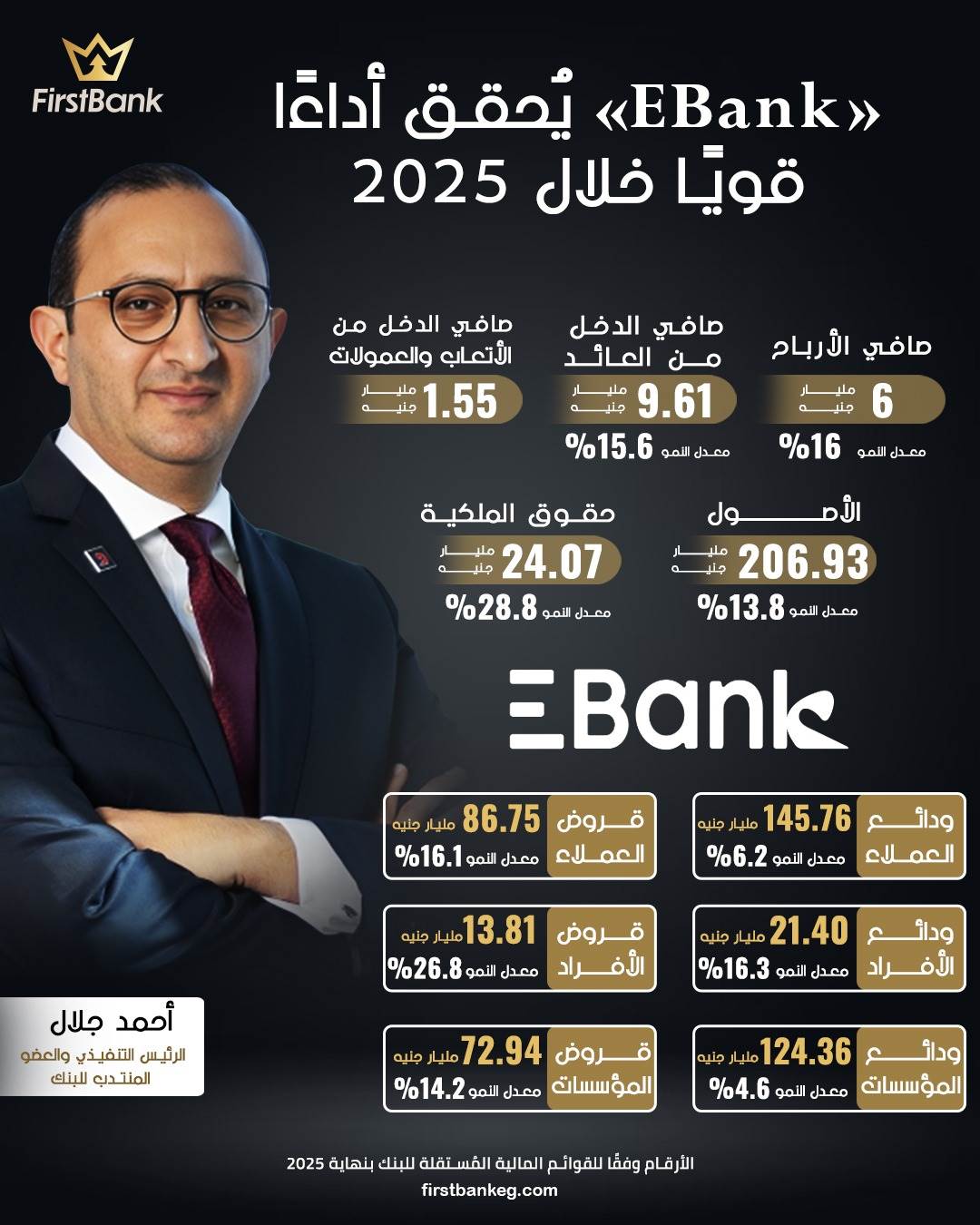 صافي أرباح «EBank» يرتفع بـ16% ويسجل 6 مليار جنيه خلال 2025